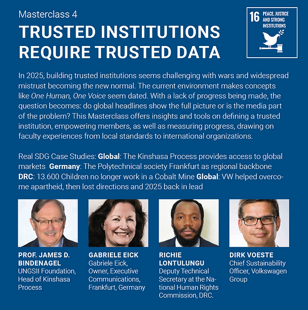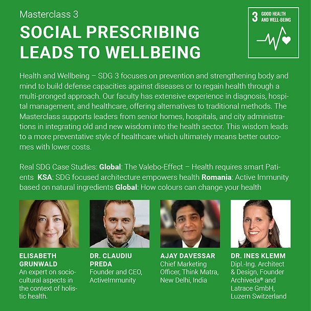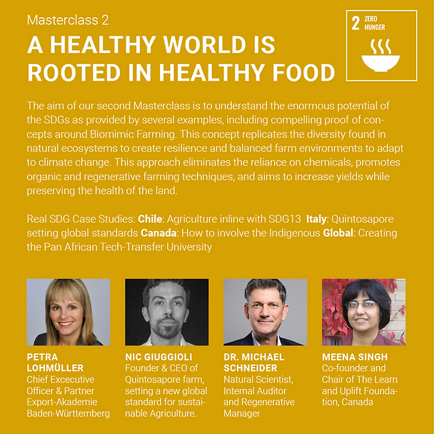 The overall design of all four Masterclasses is rooted in the conceptual premise of Learning from The Future. Therefore, each Masterclass will focus on (i) accelerating the implementation of SDGs 2, 3,9 and 16, and (ii) asking the question of where do we want to be in 5, 10, and 20 years? While at first glance this may seem cumbersome, the intent of these classes can best be illustrated by watching carefully how champions in sports or music prepare before they are set to perform. True champions are trained by their world class coaches and teachers to envision what will come next and to develop strategies in order to anticipate excellence. In this same spirit, The SDG Achievers Summer Academy exists to create champions of sustainable development who possess the unique skillset required to navigate the complexities and successfully achieve the Global Goals.